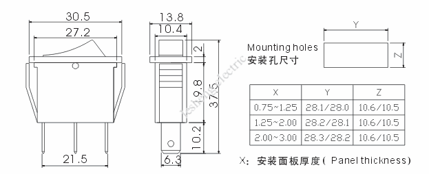 | 型 号 Model No. | 端子数 Terminal Quanlity | 通断状态 Circuitry Trait |