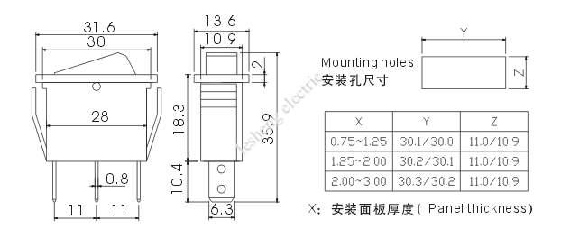 | 型 号 Model No. | 端 子数 Terminal Quanlity | 通断状态 Circuitry Trait |