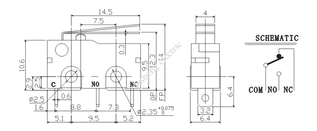 工作参数 Contact Rating: 250VAC ,3A 接触电阻 Contact Resistance: 50mΩ MAX 绝缘电阻 Insulation Resistance: 500VDC,100MΩ 耐压强度 Dielectric Strength: 500VAC,1MIN 工作温度 Operating Temperature: 10~60℃ 电器寿命 Electrical Life: 10000 Cycles |