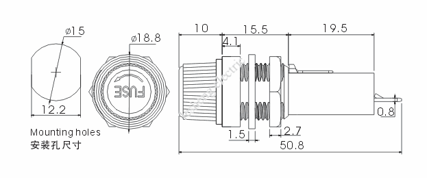 | For Fuse | Rated Amperage | Rated Voltage | Operating Power | Contact Resistance | Insulation Resistance | Dielectric Strength |