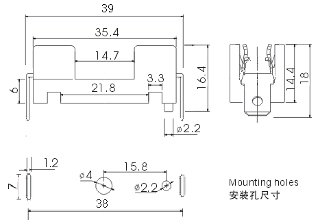 · Mounting装配方式: PCB and By Screw PCB或用螺钉固定