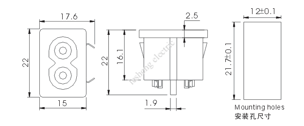 5. 装配方式:插卡式,装配板厚度0.8,1.0或1.2mm