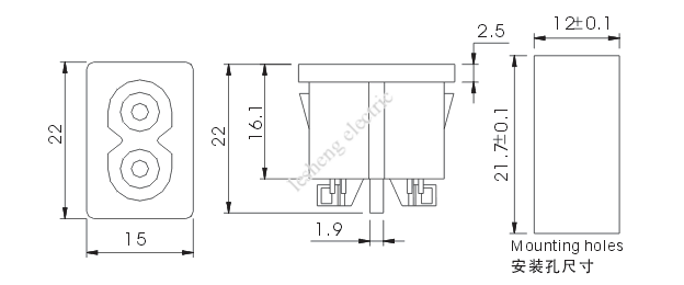 5. 装配方式:插卡式,装配板厚度0.8,1.0或1.2mm