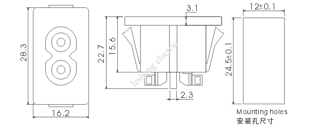 5. 装配方式:插卡式,装配板厚度0.8,1.0或1.2mm