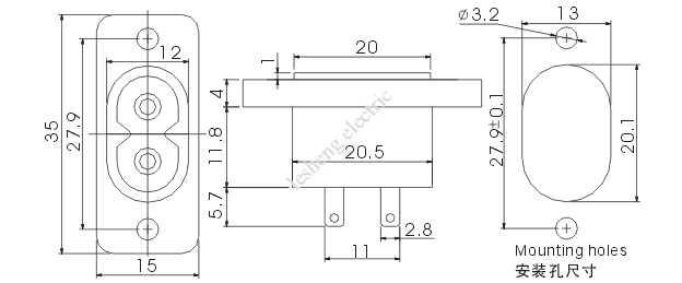 3. 绝缘电阻Insulation resistance: >100 MΩ/500Vdc
