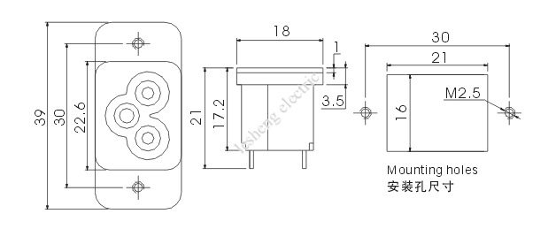 3. 绝缘电阻Insulation resistance: >100 MΩ/500Vdc